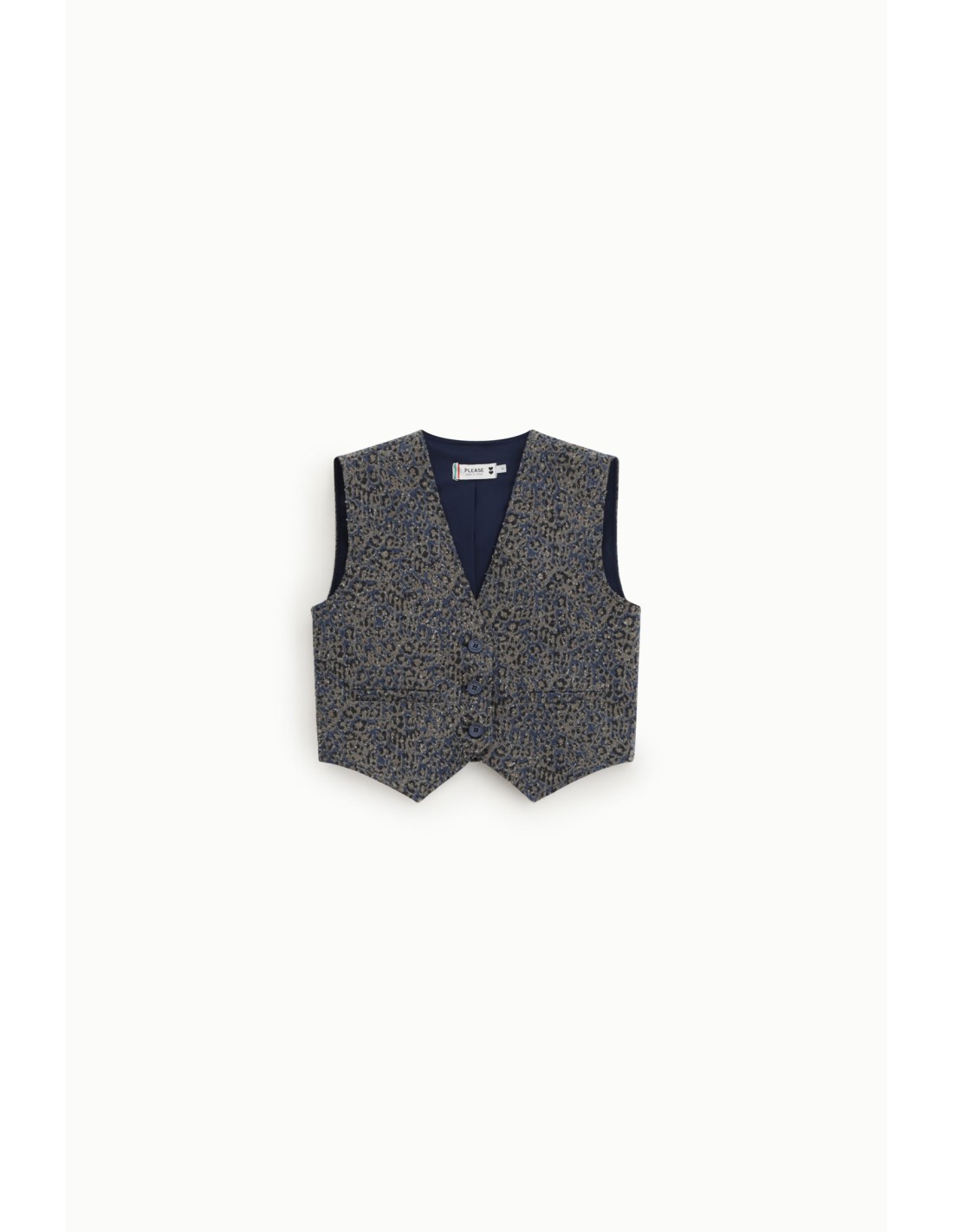 Ce gilet court à motif intégral revisite les codes du tailoring avec une approche moderne et expressive. Sa coupe structurée dessine une silhouette affirmée, tandis que les découpes sur le devant apportent du relief et une vraie lecture mode à la pièce.