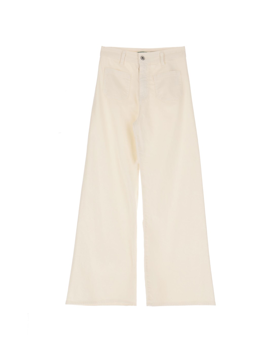 Jean évasé à taille mi-haute, modèle Birkin, doté de poches plaquées. Une silhouette féminine et équilibrée, facile à porter au quotidien.