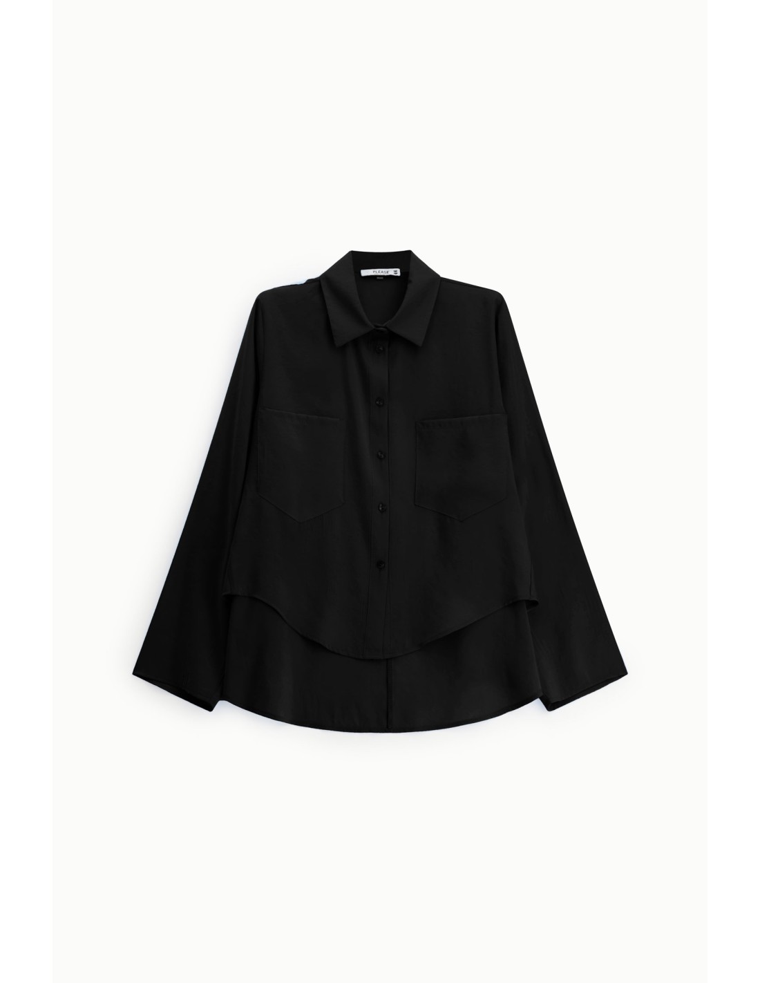 Ce chemisier Please adopte une forme trapèze et une tournure ample, pensées pour offrir une silhouette fluide et moderne. Les manches longues et amples esprit kimono, sans boutonnage, apportent du volume et une allure naturellement décontractée, tout en conservant une belle tenue.