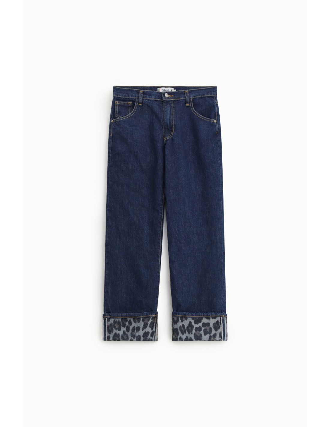 Jean coupe droite à revers animalier contrasté - Please