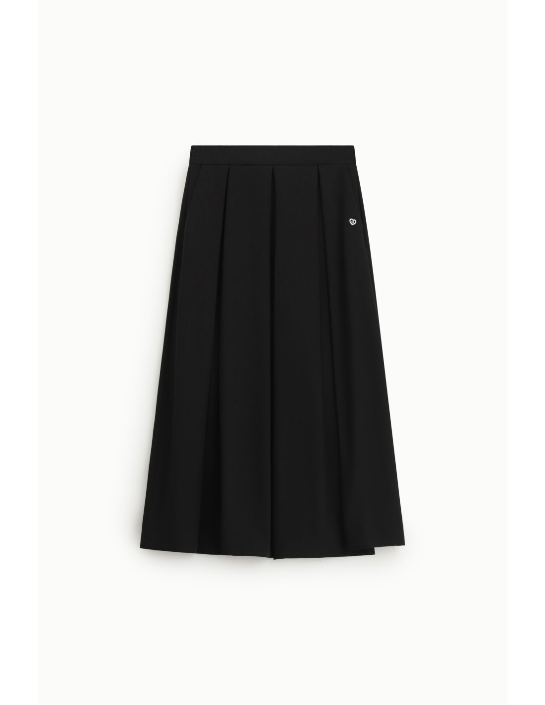Jupe mi-longue plissée à coupe évasée, dotée de poches latérales pratiques. Une pièce fluide et moderne, pensée pour un quotidien urbain actif.