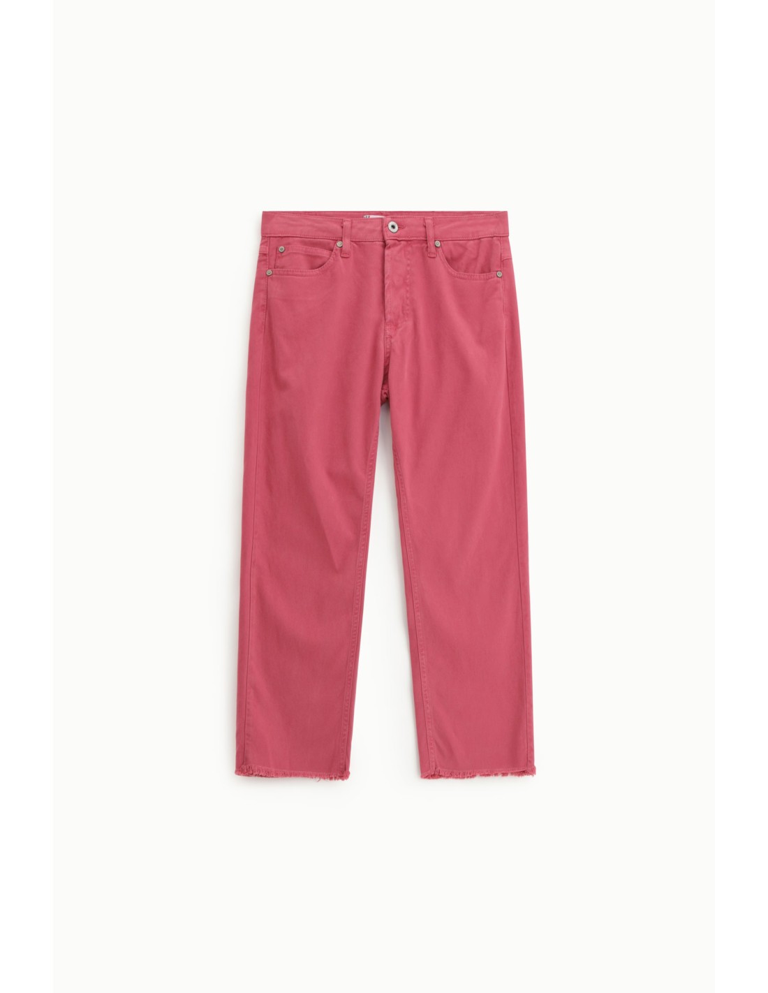 La longueur 7/8 dégage la cheville et modernise immédiatement la silhouette. L’ourlet brut frangé apporte une touche mode subtile, idéale pour dynamiser un look simple. La fermeture par bouton sur patte renforce l’esprit denim authentique et structuré.