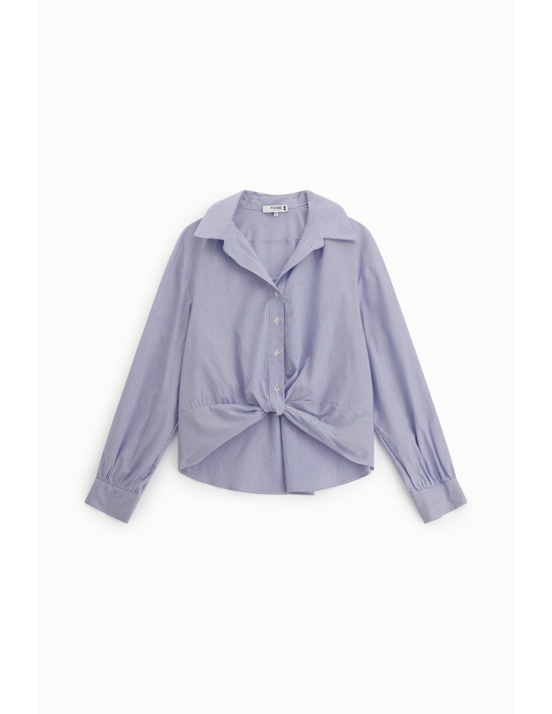 Cette chemise Please revisite la chemise classique avec un détail à nouer sur le devant qui structure immédiatement la silhouette. Ce nœud apporte du relief, marque subtilement la taille et modernise la ligne sans en faire trop.