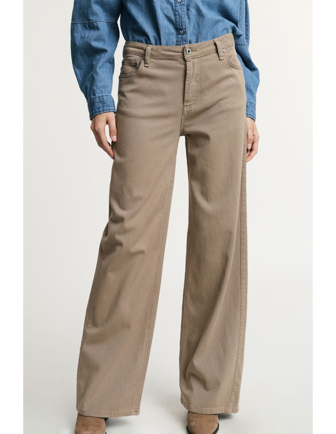 Pantalon large à taille haute construit sur une base denim moderne. Coupe droite, cinq poches, tombé fluide et confortable grâce au Tencel. Pièce facile du vestiaire quotidien qui structure immédiatement la silhouette tout en restant agréable à porter toute la journée.