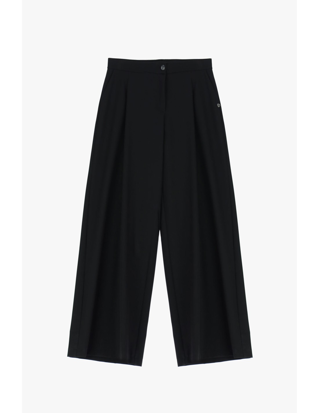 Pantalon palazzo à taille haute avec pinces frontales, jambe large et tombé fluide. Silhouette élancée et confortable, idéal pour structurer une tenue quotidienne ou plus habillée sans contrainte.