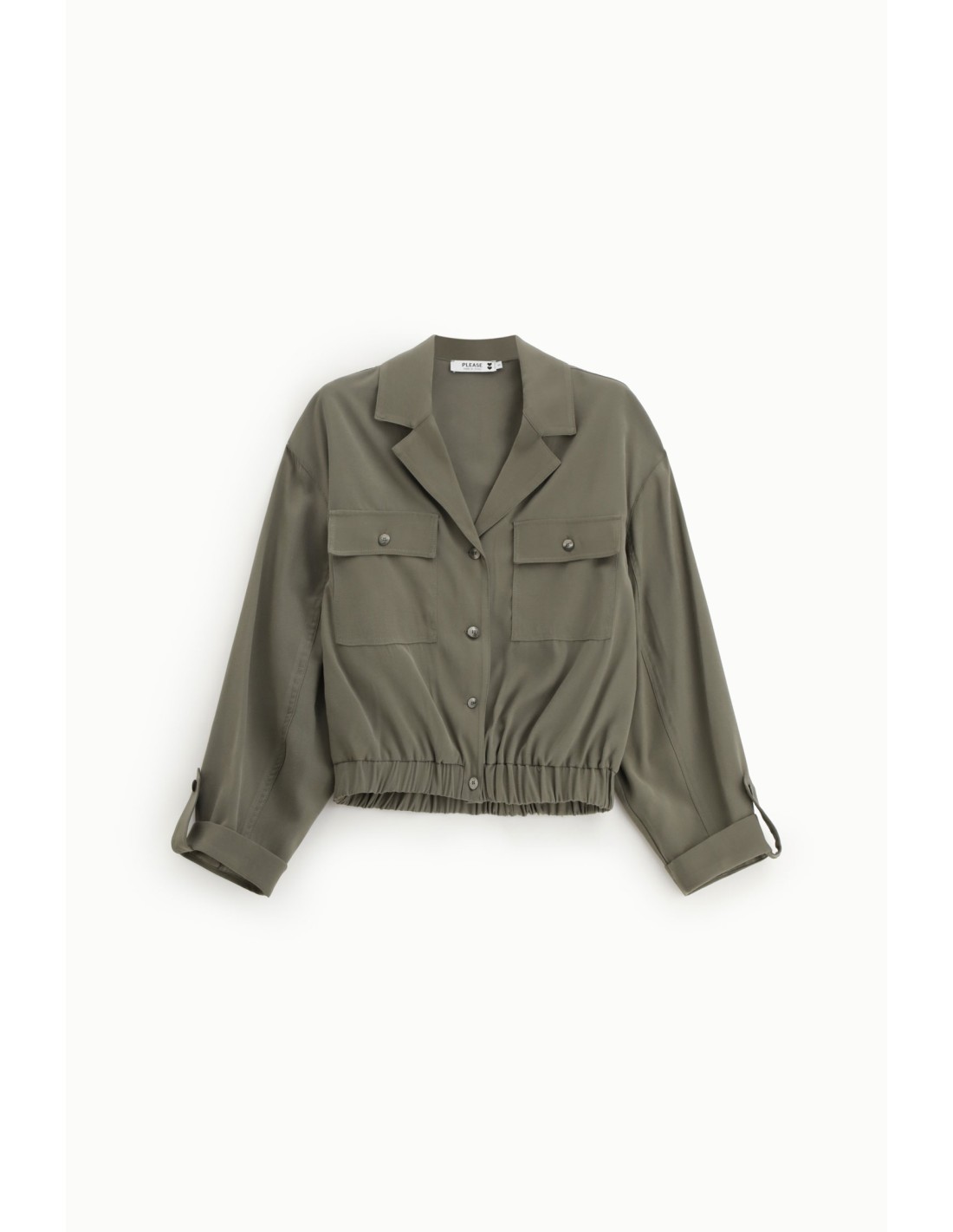 Chemise cropped Please au style urbain, avec poches poitrine et fermeture boutonnée.