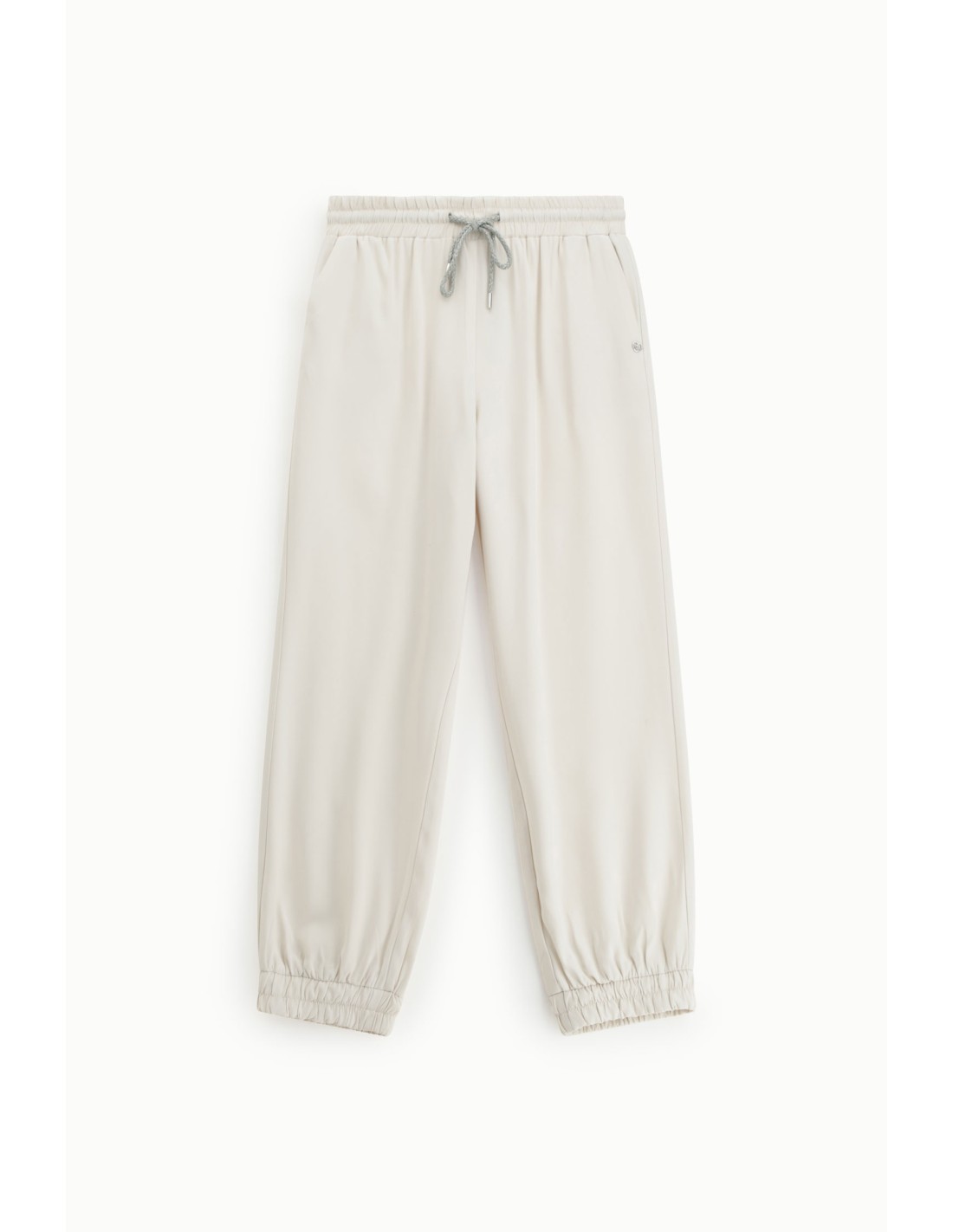 Pensé pour compléter parfaitement la chemise cropped assortie, ce pantalon Please compose un ensemble fluide et actuel. La taille élastiquée assure un confort immédiat tandis que le bas resserré affine la silhouette et donne une ligne nette sans rigidité.