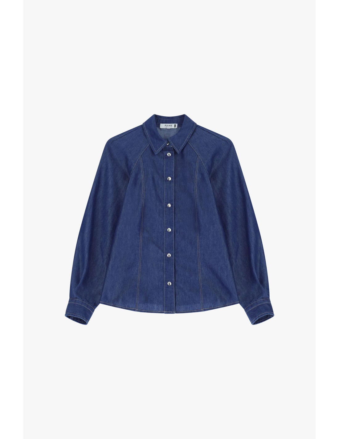 Chemise en denim Please structurée par ses coutures apparentes qui donnent du relief à la silhouette.