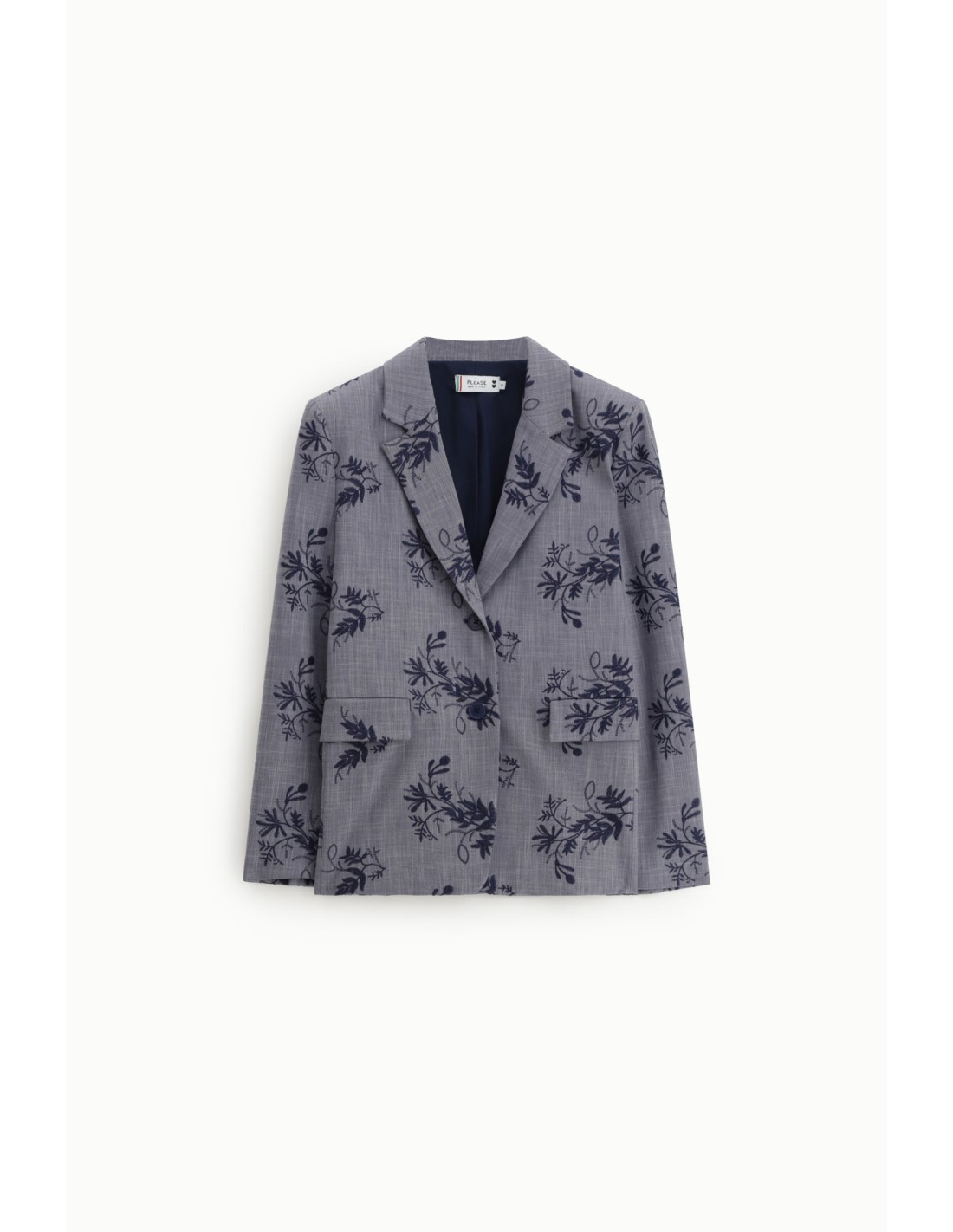 PLEASE Femme – Blazer droit floral en drap chiné