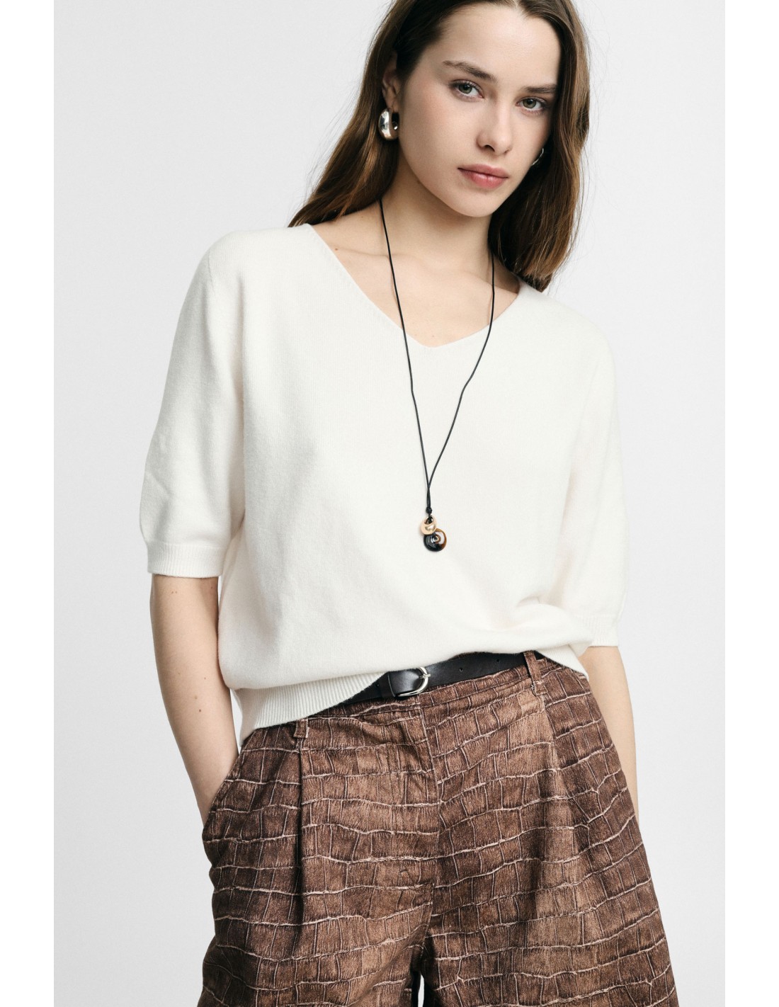 À porter légèrement loose avec un pantalon taille haute pour structurer la silhouette, ou en superposition sous un blazer pour un look urbain chic parfaitement maîtrisé.
