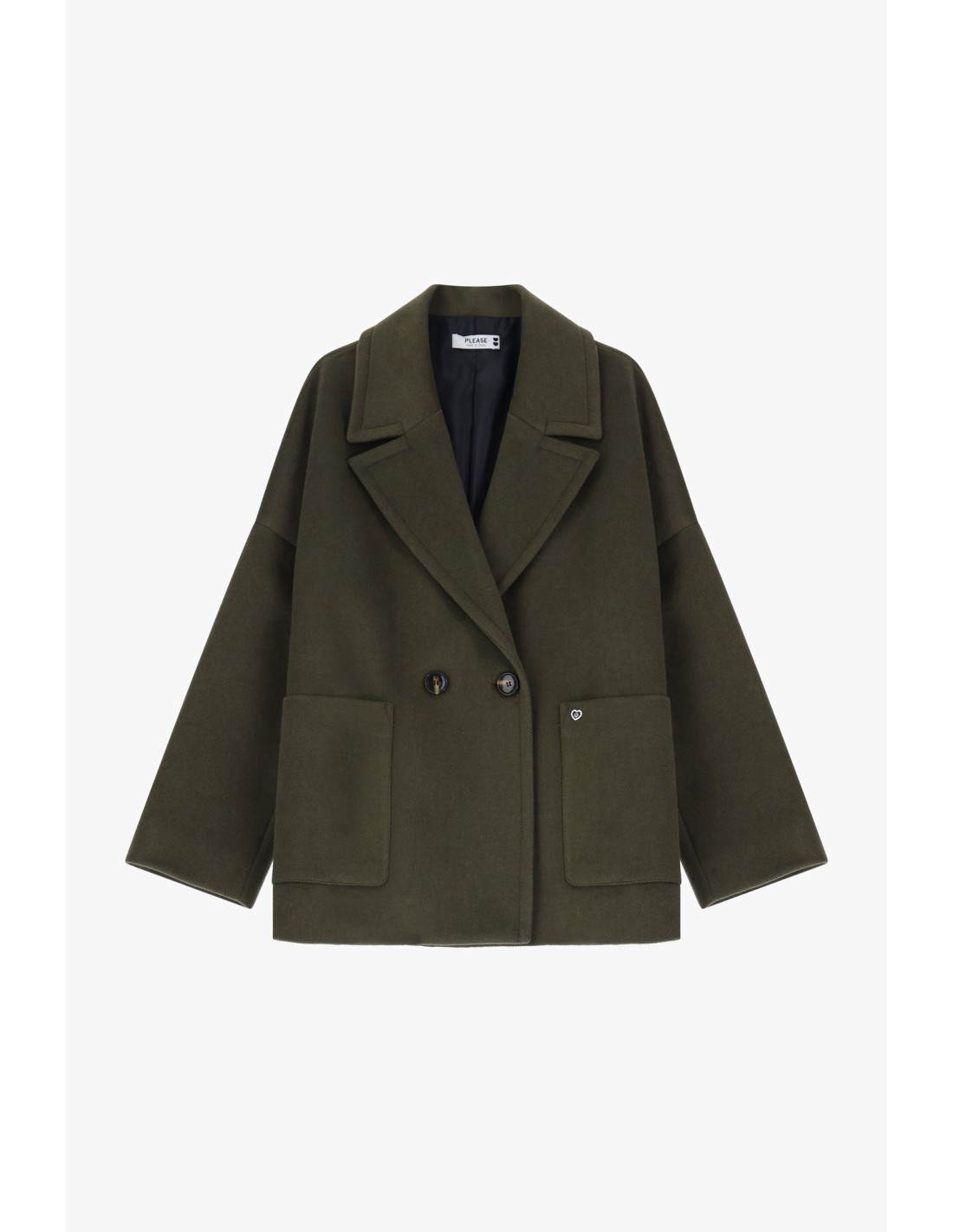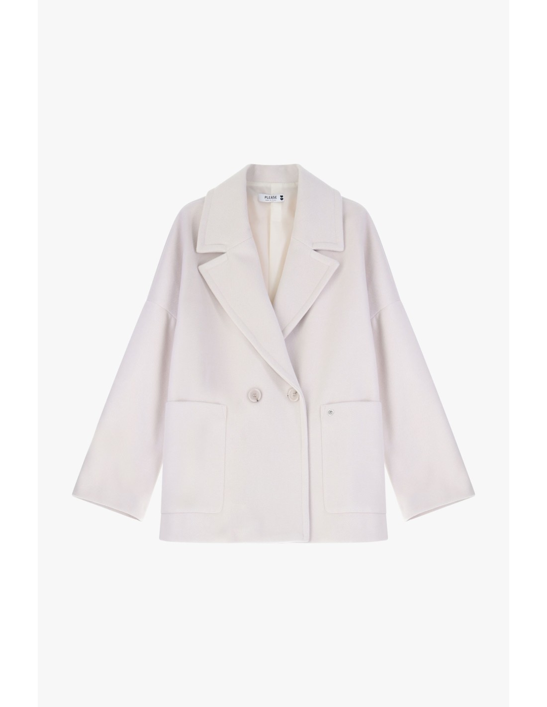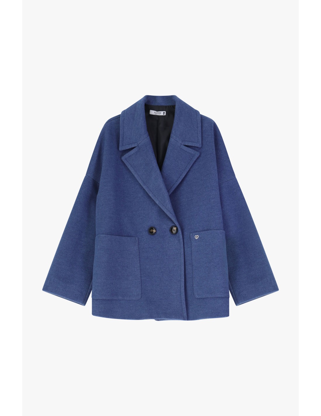 copy of Please Femme, manteau court croisé, oversize, en drap coloris bleu denim