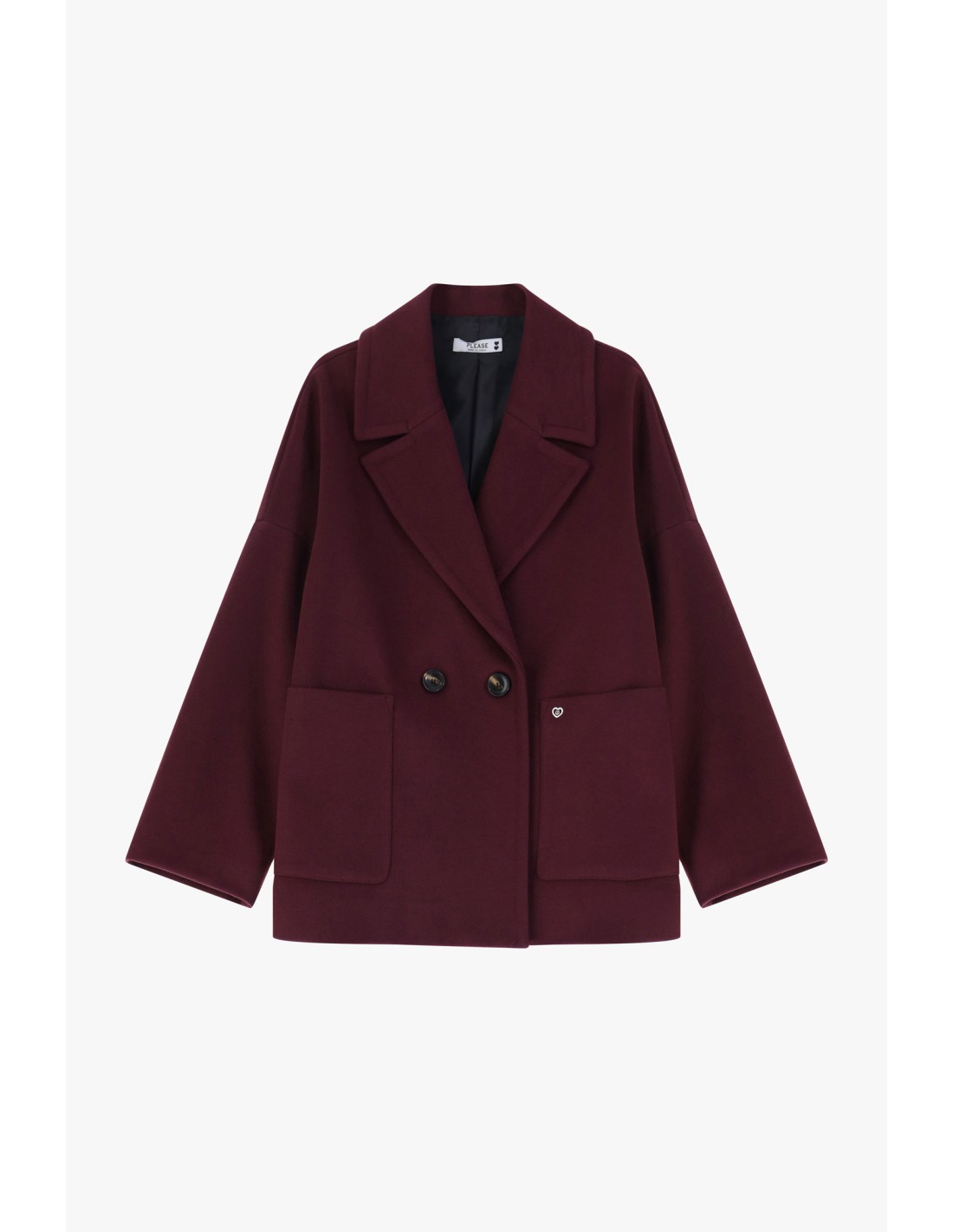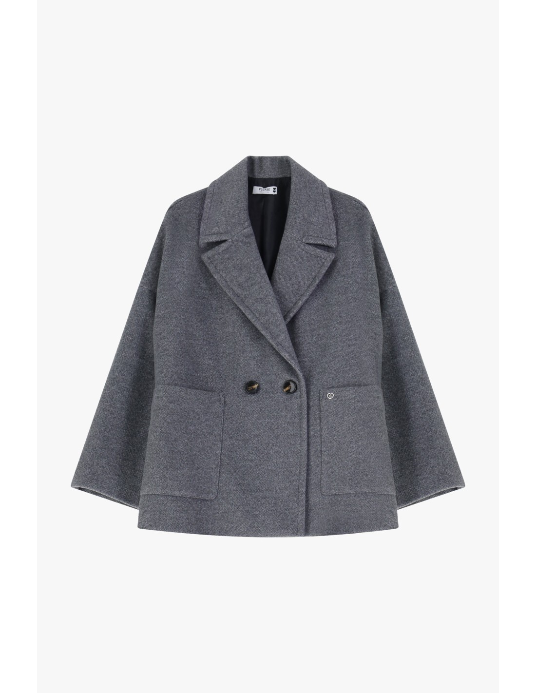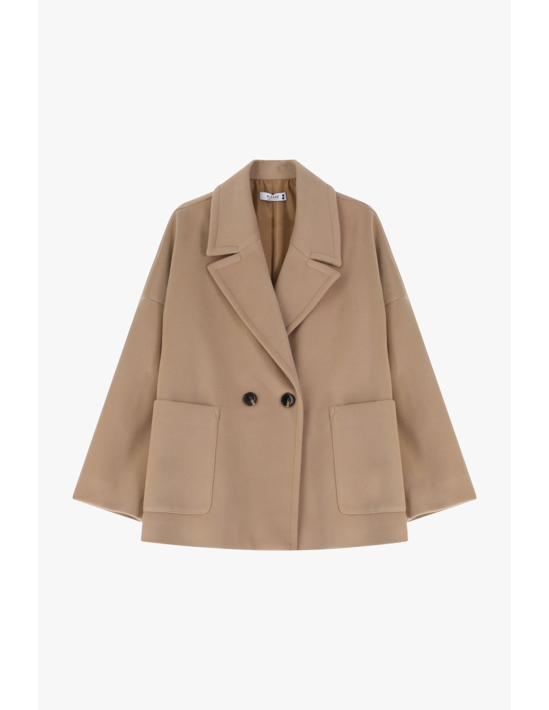 copy of Please Femme, manteau court croisé, oversize, en drap coloris bleu denim
