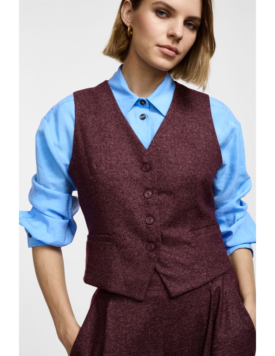 Please Gilet en twedd bordeaux chiné