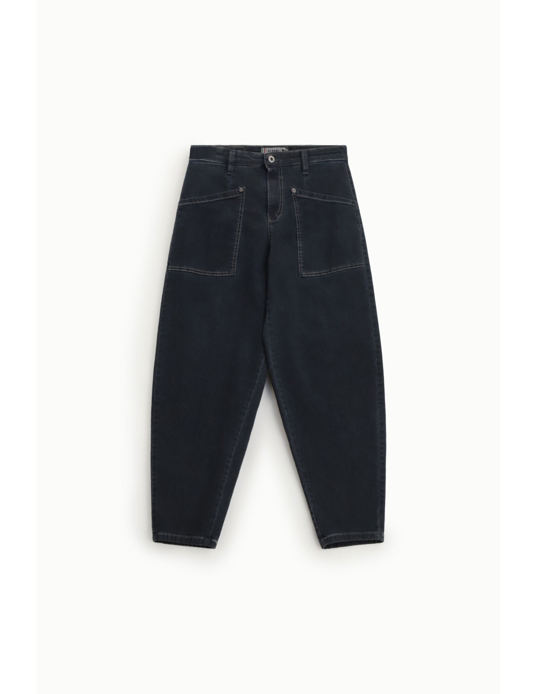 Jean Please à coupe balloon en denim brut stretch, doté de poches avant plaquées et de poches arrière à passepoil. Une pièce urbaine et contemporaine, alliant structure et confort.