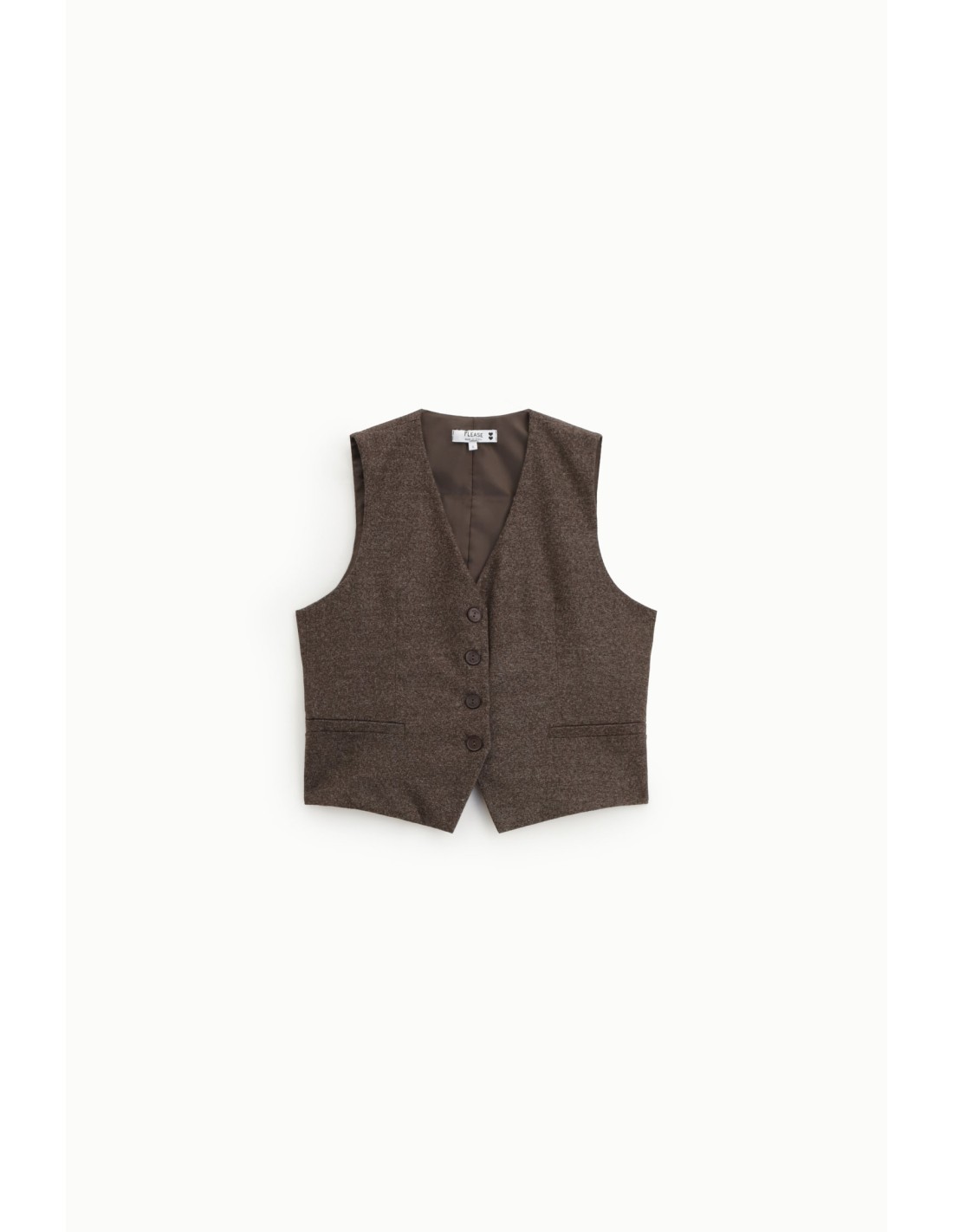 Please Gilet en tweed chocolat chiné