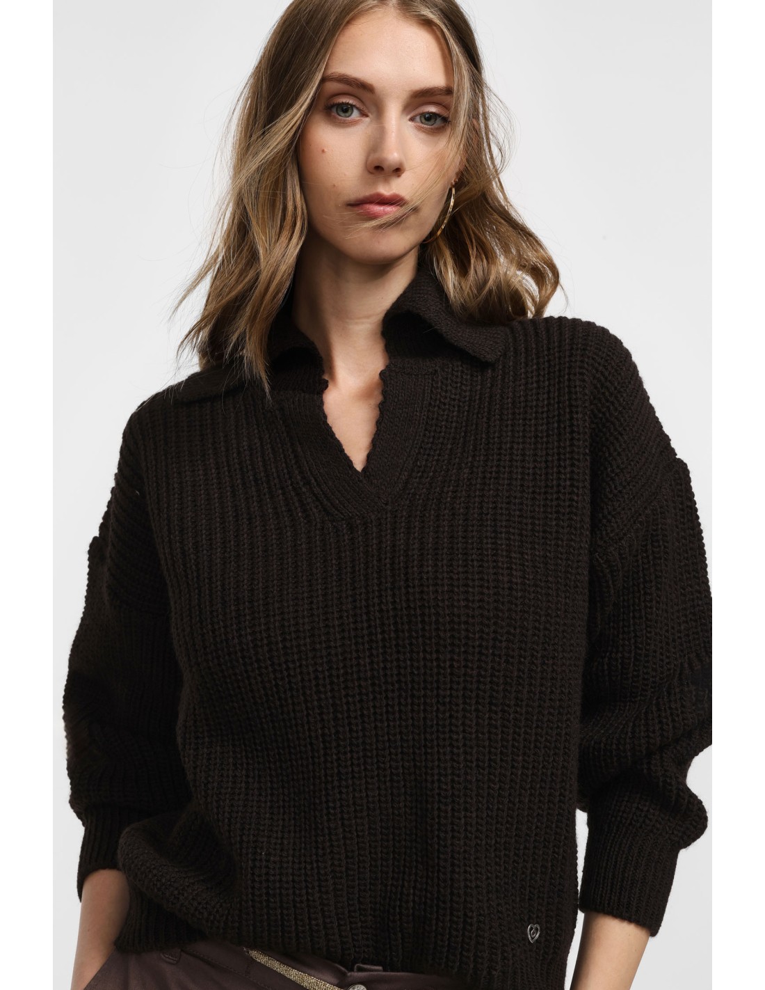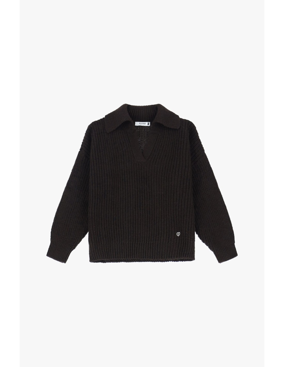 Please Pull en maille chocolat col camioneur